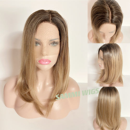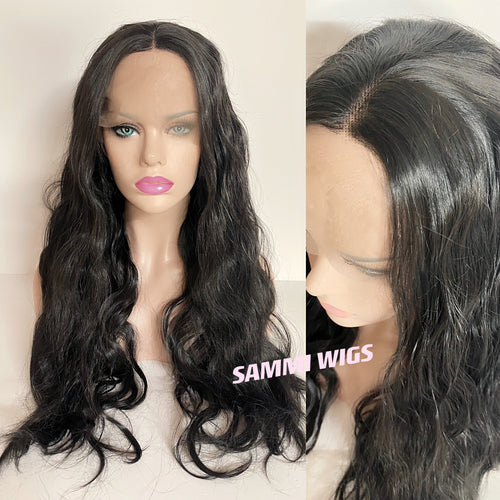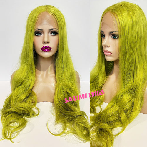 Hand made lace front long black ombre to blue and dark pink color curly wig