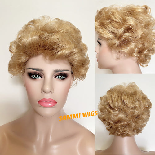 LTS-0003 Short curly blond wig in Japanese kk fibre